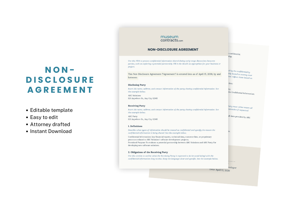 Looking for a Non-Disclosure Agreement to protect your Museum’s confidential information?